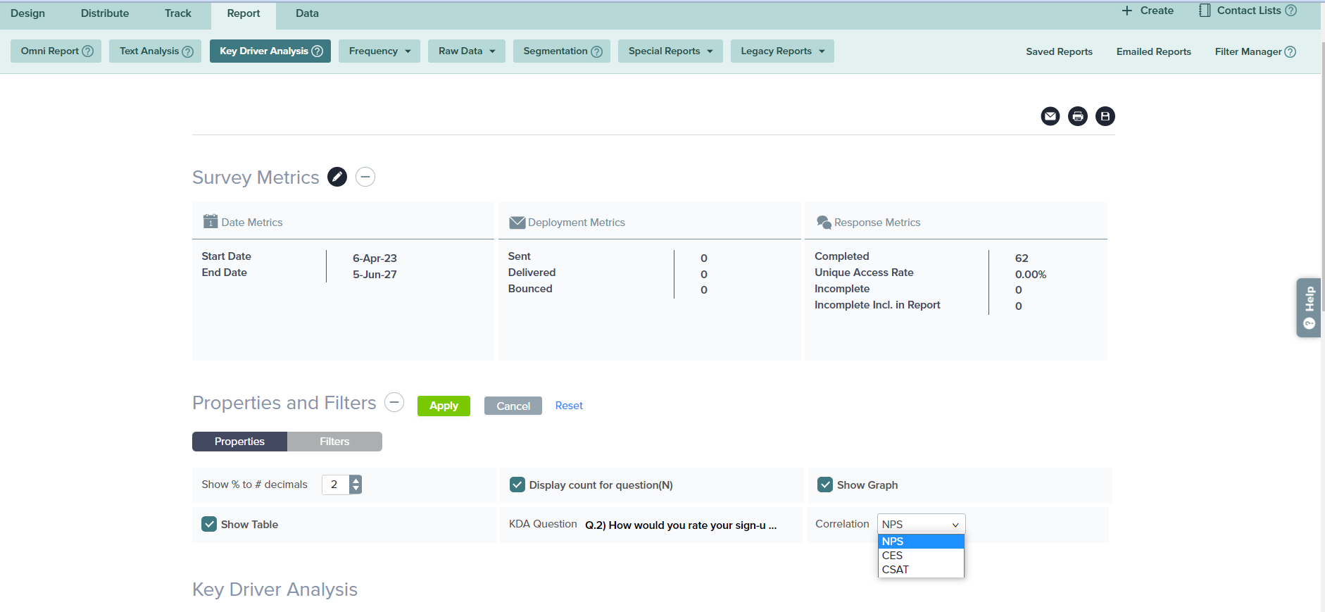 Follow these steps to generate a Key Driver Analysis Report: