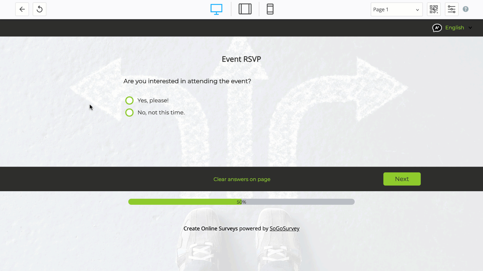 • Make the first ‘Next’ centered: Ensure a polished appearance by centering the position of the first “Next” button in your survey, creating a more balanced and user-friendly layout.