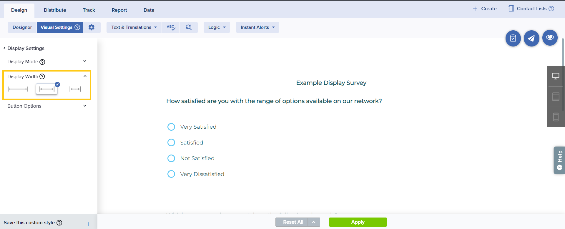 9. Choose Display Settings to change the Display Mode, Display Width, or Button Options for your project.