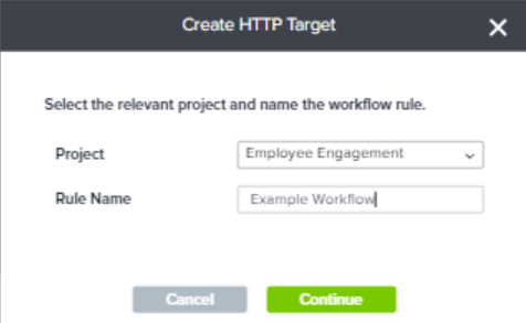 - Next, select the project on which you want to apply the HTTP Target and name the rule for your internal reference. Click Continue.
