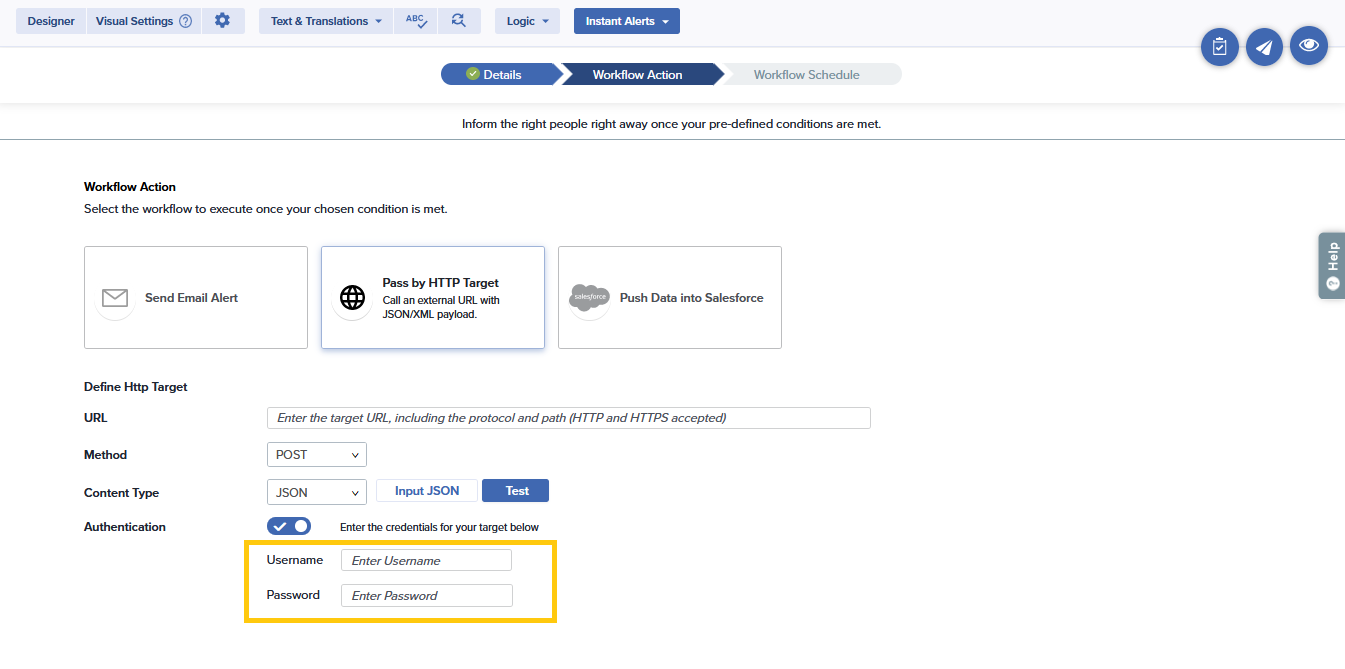 - You will be redirected to Rules & Alerts to complete this set-up. By default, the selected triggering event is Survey Response Received. If you need to trigger this HTTP Target based on some other conditions, visit the Details step of the wizard and make changes.