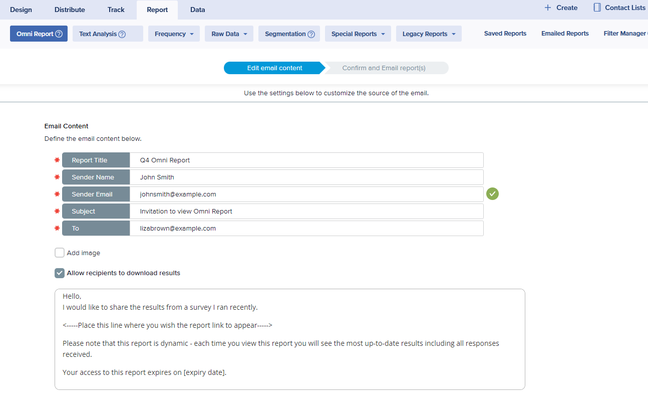 - Subject: Add a subject line that is clear and simple. The maximum character limit for this field is 250. By default, you’ll see Invitation to view Omni Report.
