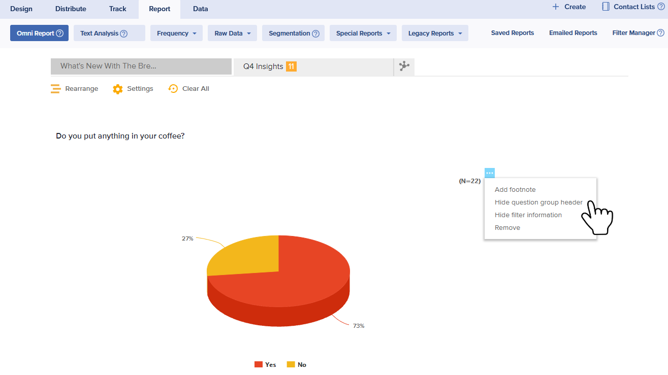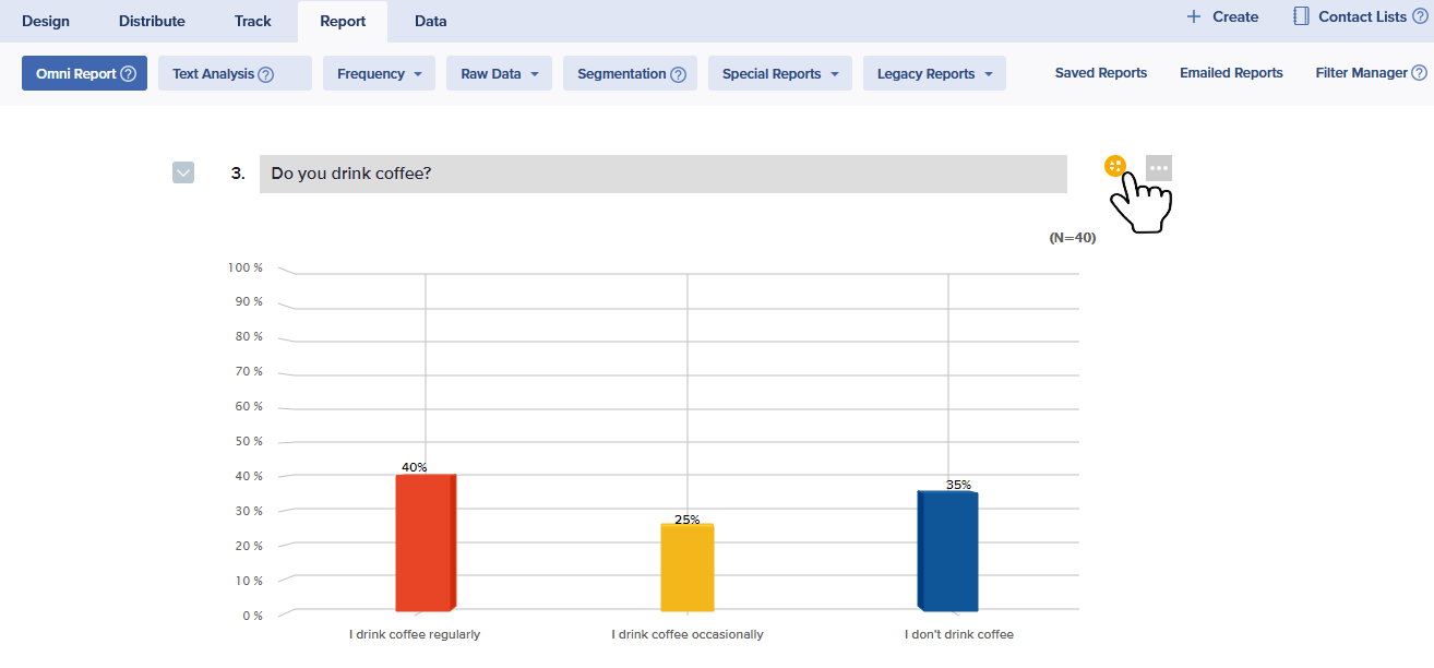 - Within the Omni Report, hover over the text of a rating/metric question and click on the three dots to the right.