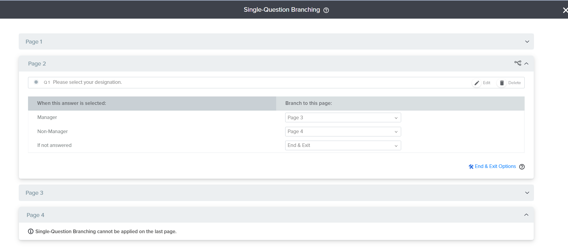 - As needed, you may also expand the view for other pages and questions on which you would like to apply branching.