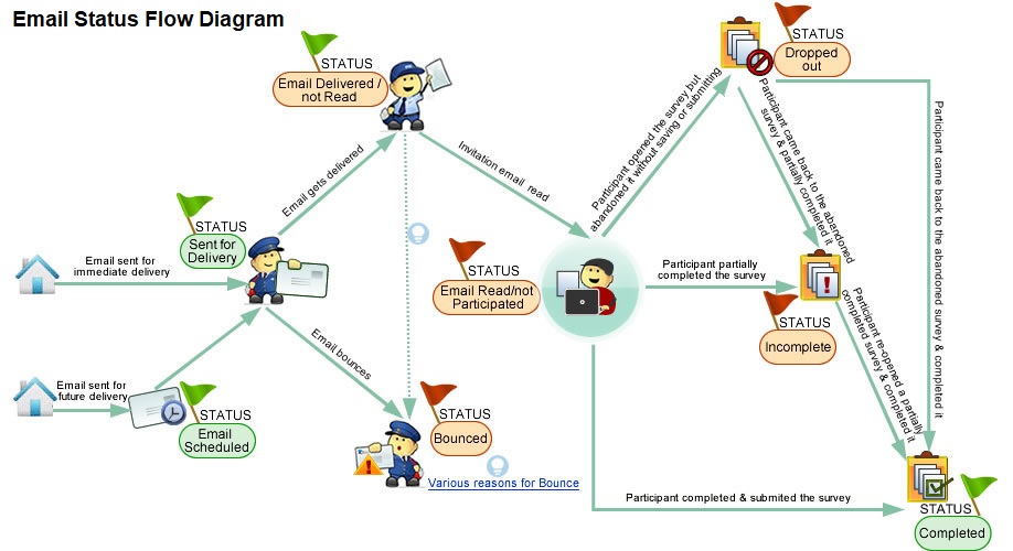 • Email Delivered/Not Read: Indicates that participant has yet to access the invitation email