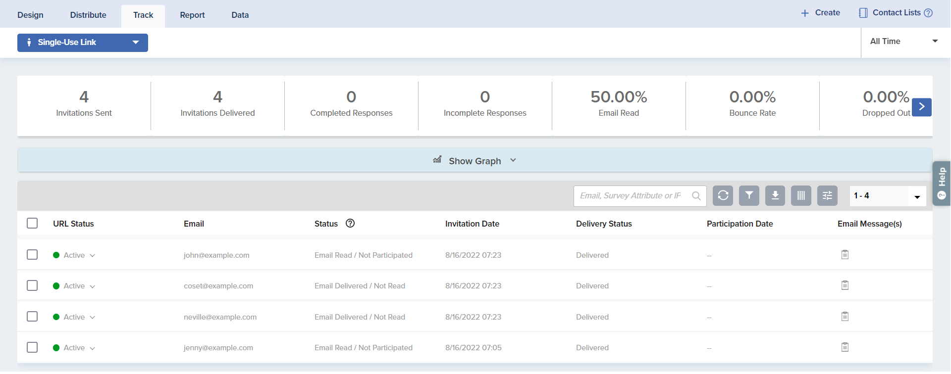 • Email Read/Not Participated: Indicates that the participant opened the invitation email but did not click on the link to participate in the survey.