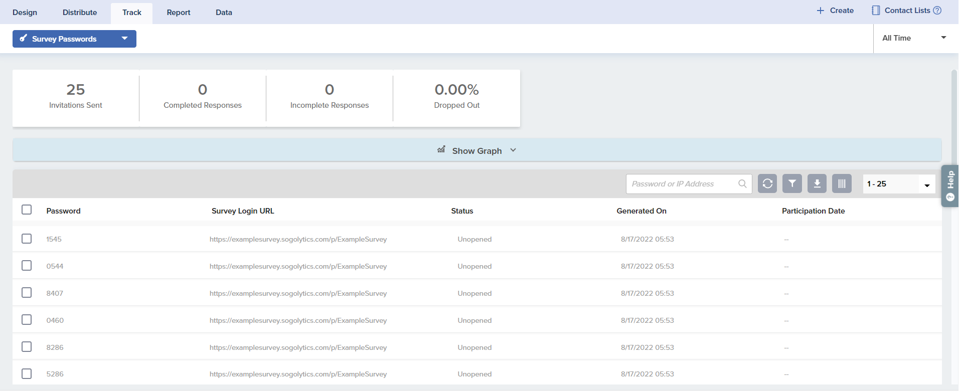 • Unopened: The password has not been used to access the survey/assessment.