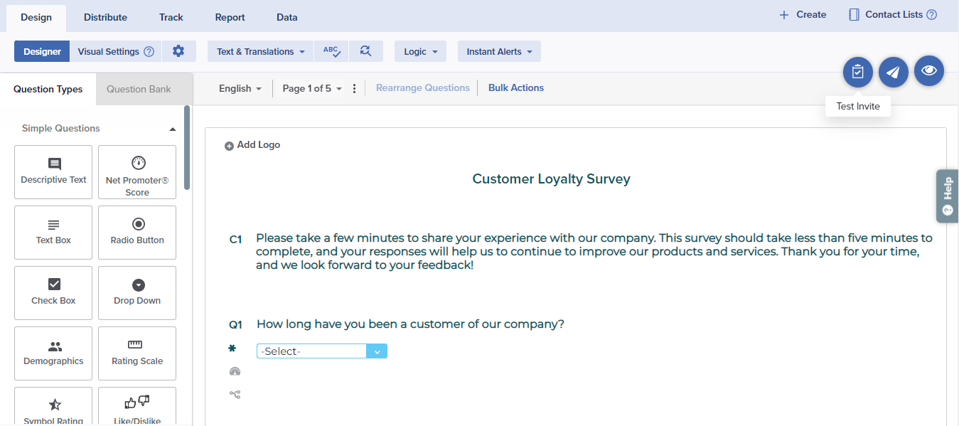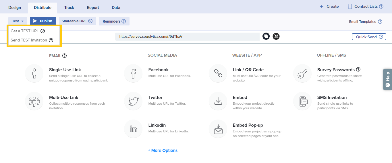 Home Distribute Other Publishing Options Test Survey Link/Invitation