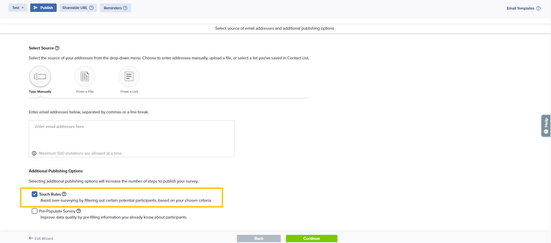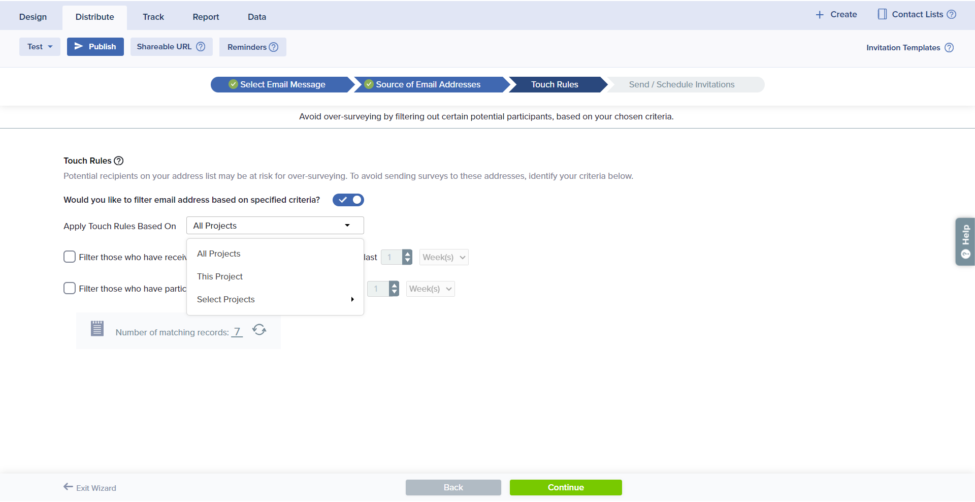 Touch Rules offer a smart tech solution to avoid the common mistake of over-surveying by preventing email invitations from being sent to the same contacts repeatedly.
