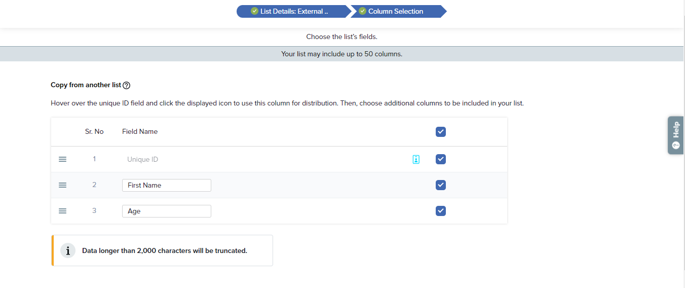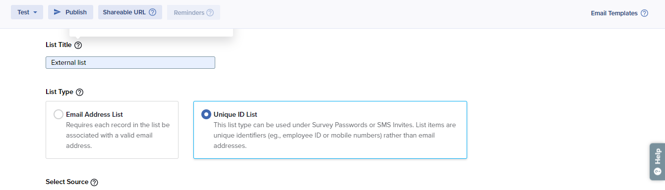 - Select Unique ID List as your list type.