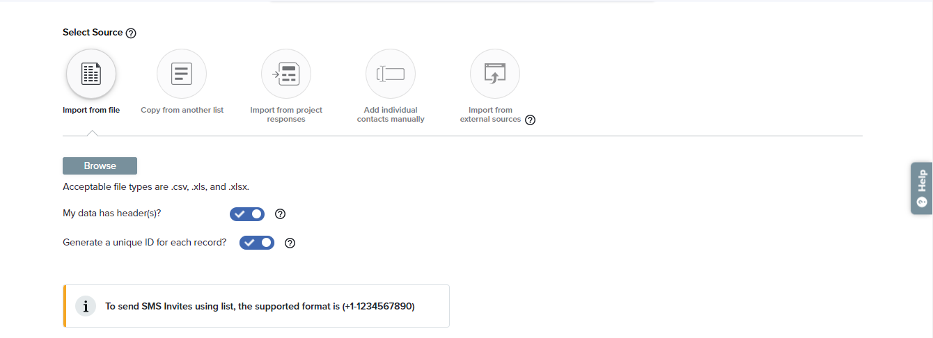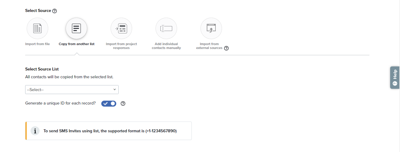 - Copy from another list: Import previously created Contact Lists.